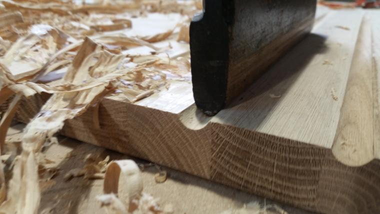 However I found myself in a situation recently where a moulding plane was faster and gave better results than any machine or power tool we have. We were fitting some oak worktops for a client that required some drainage grooves applied. On previous occasions we have reverted to a router and a jig. I hated that solution, it takes time to make a jig and one slip with the router and the whole worktop can be ruined.
